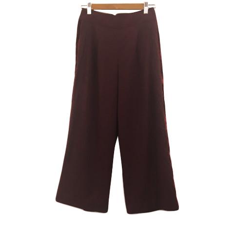 【中古】リリーブラウン パンツ ストレート ロング バックジップ 無地 ライン ベロア スリット 0 赤 茶