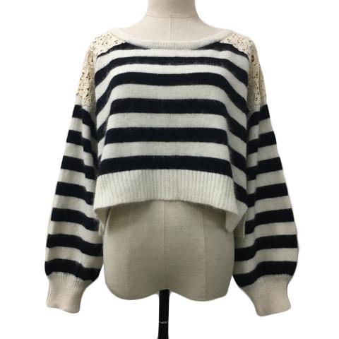 【中古】スナイデル セーター ニット ショート丈 ラウンドネック ボーダー アンゴラ混 レース 切替 長袖 F 黒 白