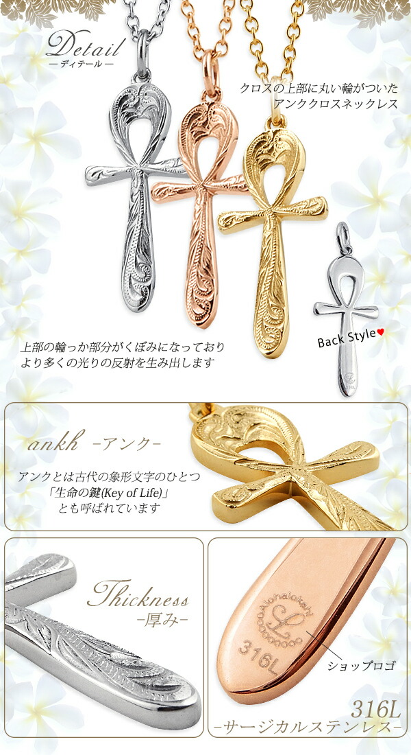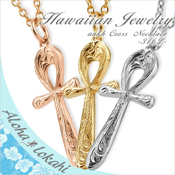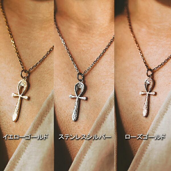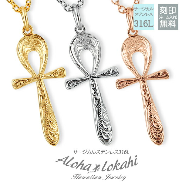 送料無料 刻印無料 ハワイアンジュエリー ペアネックレス アンクモチーフ アンククロスネックレス ハワイアン サージカルステンレス