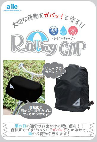 自転車 カゴカバー Rainy CAP レイニーキャップ 前カゴ/後カゴ/リュック対応 ブラック aile エール 防水 おしゃれ バスケット リュック バックパック