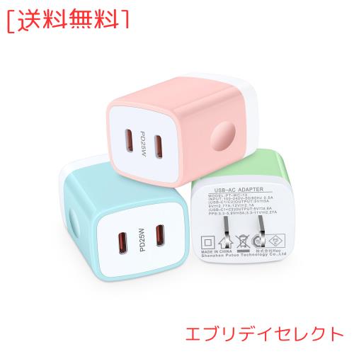 Viviber 急速充電器 iPhone ACアダプター Type-C 充電器 純正 USB PD2ポート 25W タイプc コンセント*3個 PSE認証 ac式充電器 PPS急速協