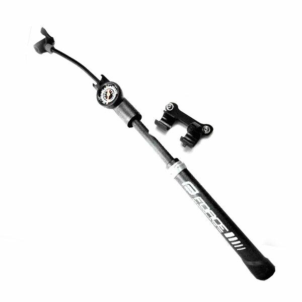 自転車 空気入れ フレームポンプ 丸型ゲージ ホース・ブラケット 付 ゲージ付 携帯 米式 仏式 スポーツバイク 車体取付 収納 携行 FORCE フォース