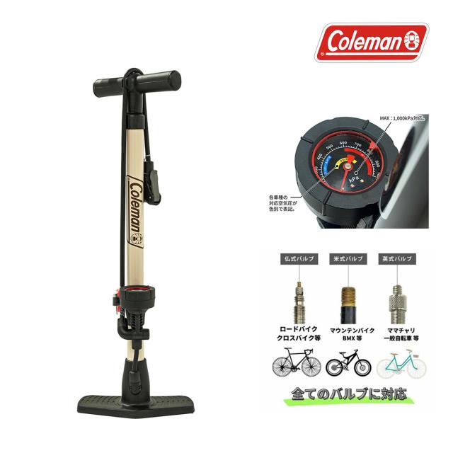 Coleman コールマン 自転車 空気入れ 圧力 ゲージ付 英式 米式 仏式 バルブ対応 ゲージ付きポンプ コンパクト