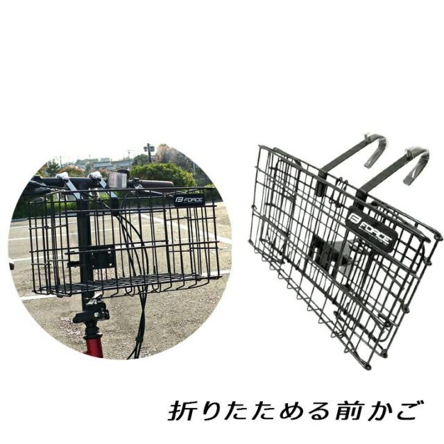 自転車 カゴ 前用 フロント ハンドル取付 折りたたみできるバスケット ブラック FORCE フォース