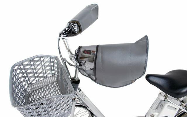 大きな透明窓付きで電動スイッチパネルや変速操作が確認できる防寒ハンドルカバーです。