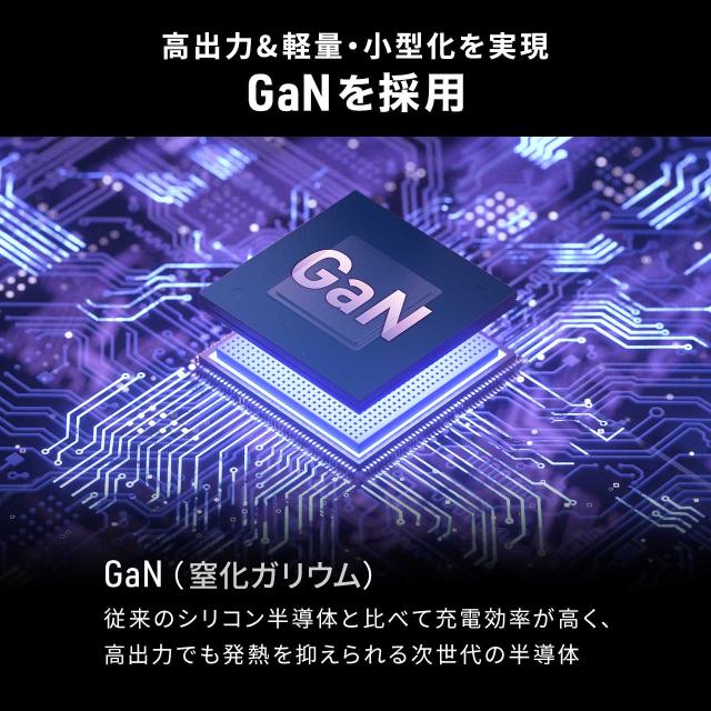 ●次世代半導体のGaN(窒化ガリウム)を採用し、高出力でありながらコンパクトサイズを実現しています。