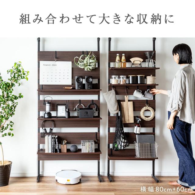 ⇒ご購入の前にご確認下さいリビングやダイニング、玄関やキッチンなど、お部屋のいろいろな場所に設置できる突っ張り式ラック。壁に穴を開ける必要が無いので、マンションやアパートなどの賃貸でも設置が可能。パーテーションや間仕切りにもおすすめ。幅45cm。ダークブラウン。【WEB限定商品】
