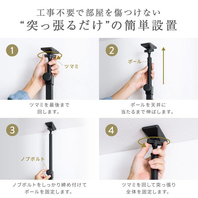 ●工事不要の突っ張り式で、床と天井があればどこでも設置ができます。●お部屋の間仕切りとしても設置ができます。