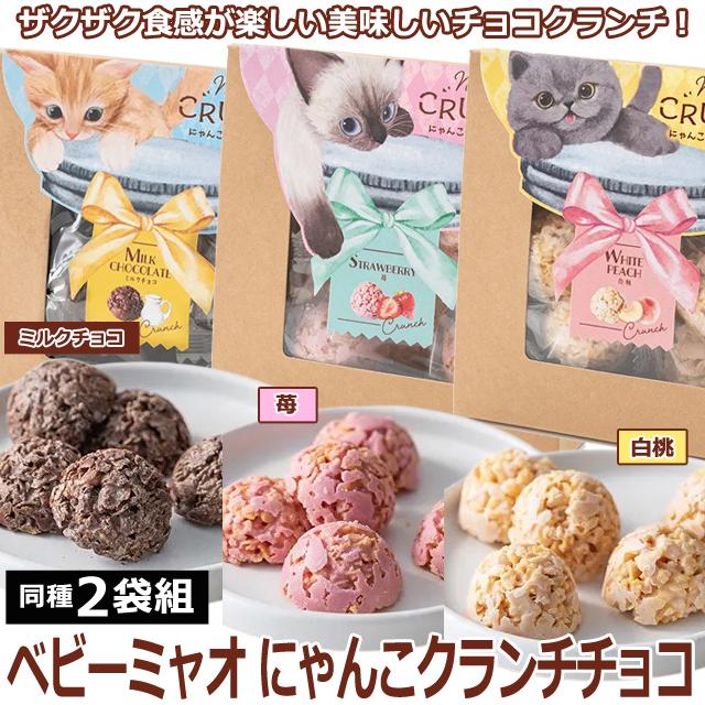 ホワイトデー プレゼント(ベビーミャオ にゃんこクランチチョコ 同種2袋セット)ミルクチョコ 苺 白桃 友チョコ マイチョコ ファミチョコ バレンタイン
