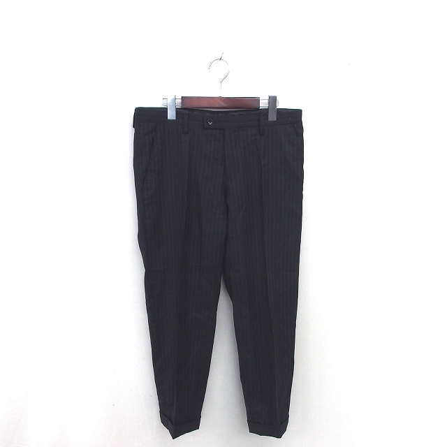 【中古】ダナキャランニューヨーク DKNY スラックス テーパード ストライプ パンツ ロールアップ 38 ブラック 黒 /TT