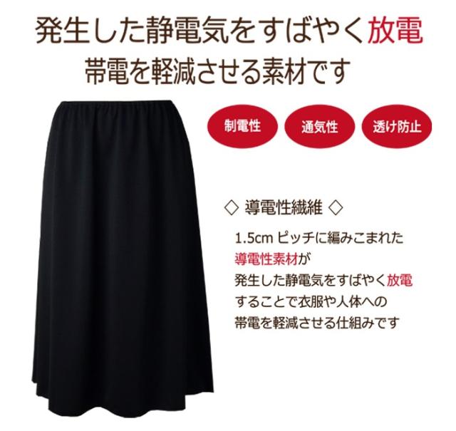 導電糸 帯電防止 ペチコート 65丈/70丈/75丈/80丈 日本製【静電気防止 帯電防止 乾燥 花粉 マキシ丈 ワンピース ロング】