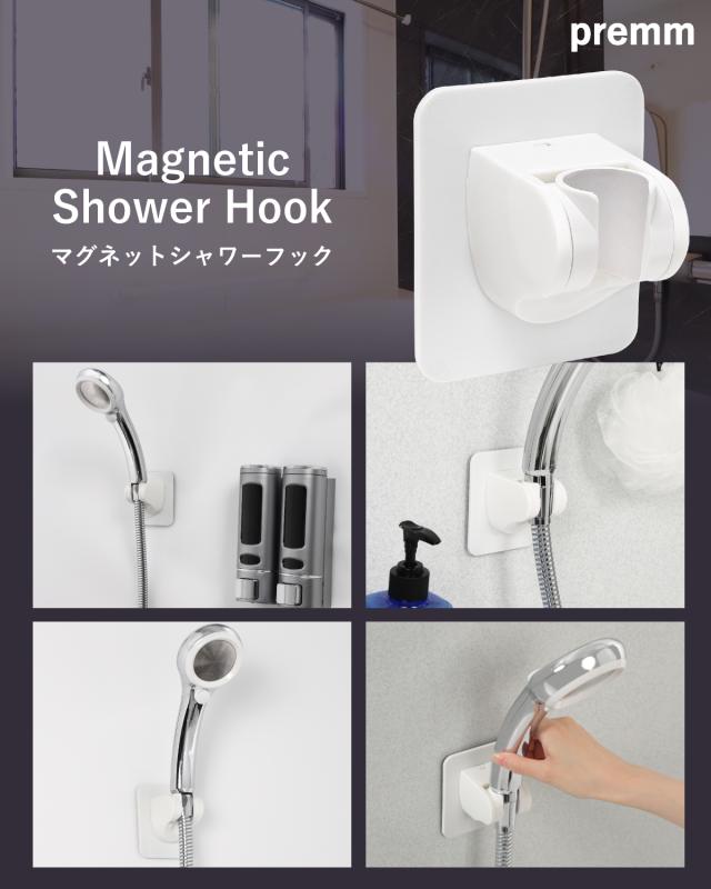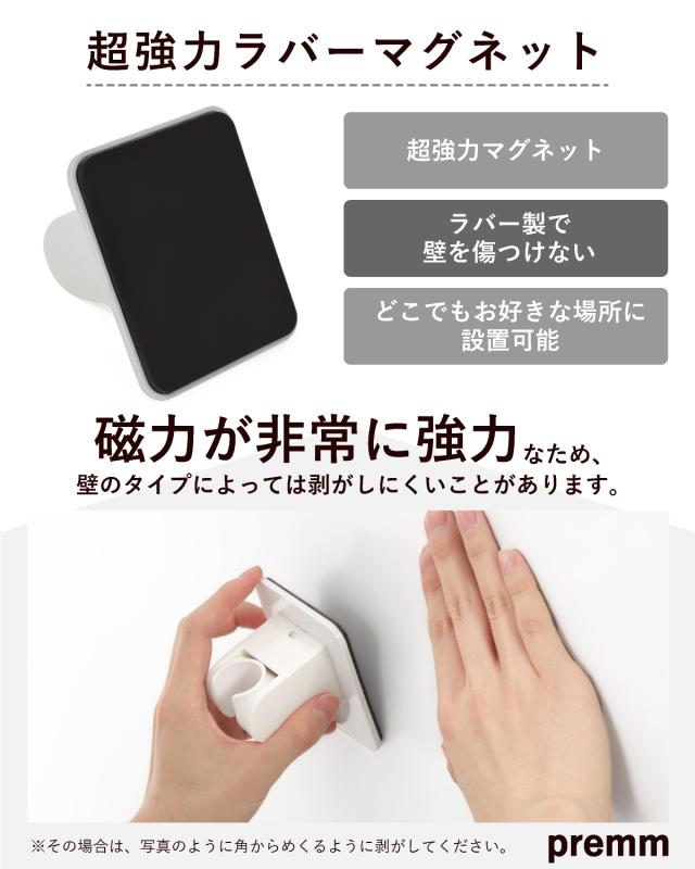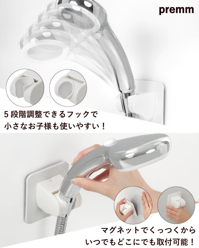 公式 マグネット シャワーフック PREMM どこでも簡単取付 5段階 角度調整付き ユニットバス シャワーホルダー 磁石 シャワー ホルダー