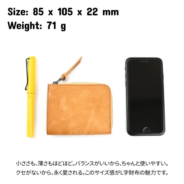 プエブロレザーのL字ファスナーコンパクト財布です。L字タイプのミニ財布は、小さい財布の中でもスタンダードなカタチ。適度なコンパクトさで、収納面のバランスがいいことから、永く愛され続けています。ロングウォレット(長財布)に対して、横幅が短めなので、ハーフウォレットやショートウォレット(短財布)と呼ばれることも。ヘビーユーザーの間では、『L字のショート』の愛称で知られています。