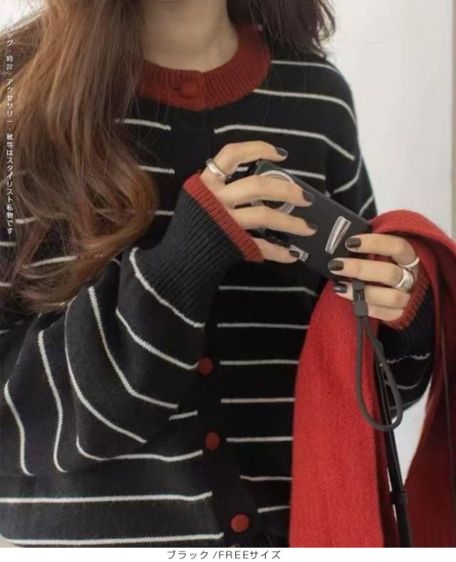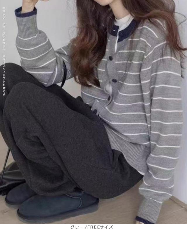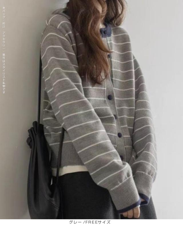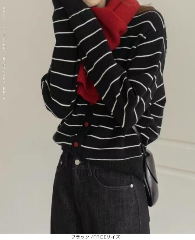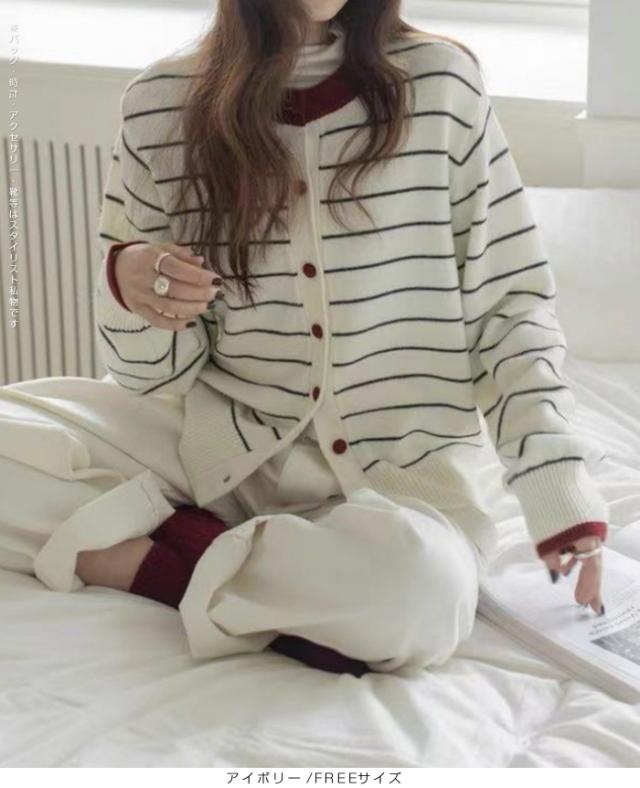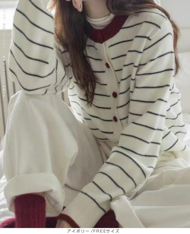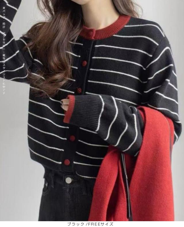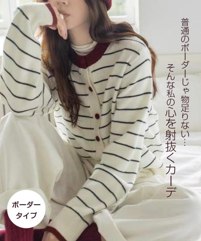 【 バイカラーボーダーカーデ 】