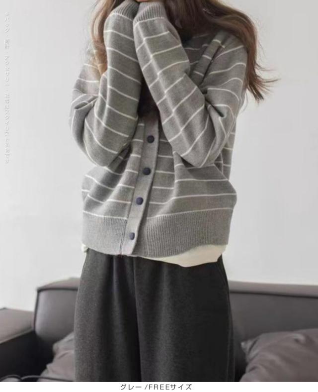 - グレーのしましま模様にしました。 50代158センチ51キロゆったり着られていい感じです。 洗濯して毛玉ができないか心配です。