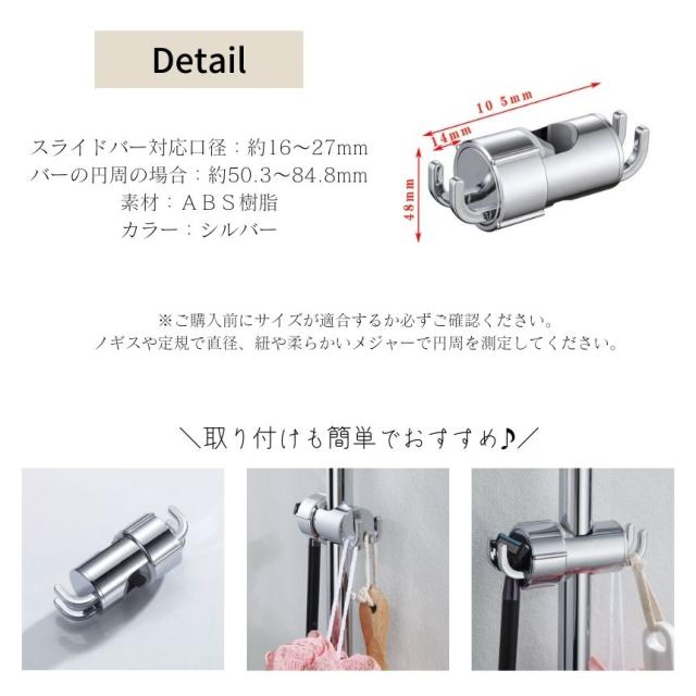 シャワーフック シャワー シャワーホルダー スライド フック スライドバー ラック ホルダー 交換用 穴あけ不要 取り付け 交換 風呂 シャワールーム おしゃれ 壁 バス ウォール 浴室 浴槽 キッチン トイレ 洗面所 お風呂