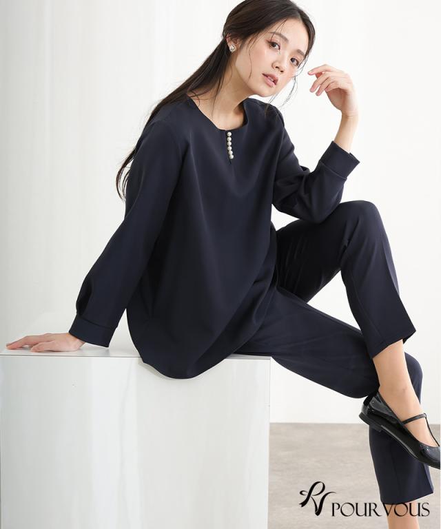 パール付きブラウス2点セットパンツスーツ/191242267