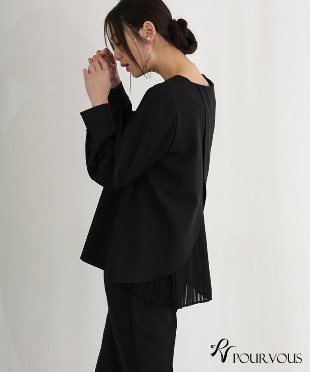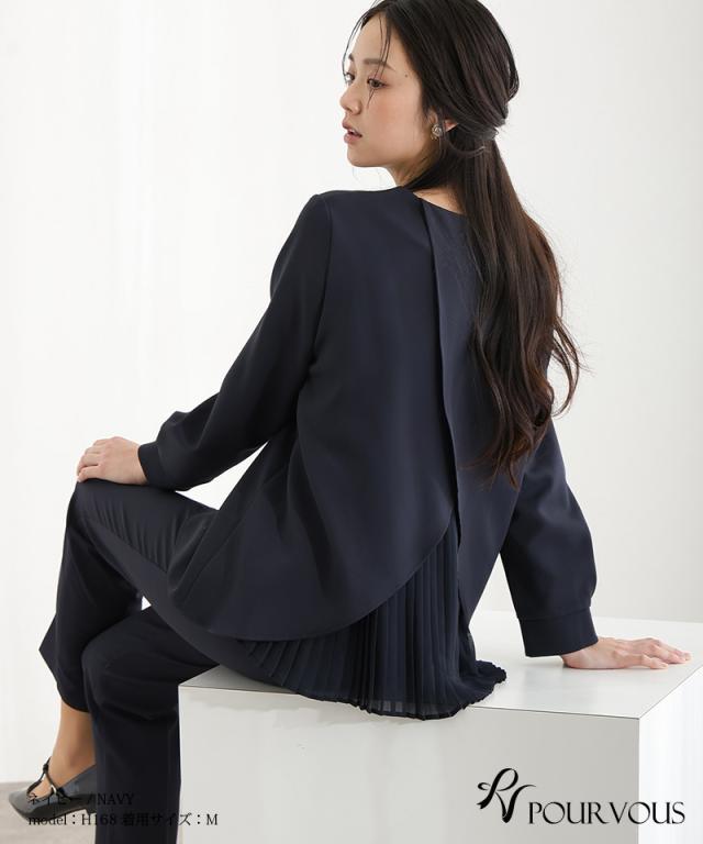 ブラウスの後ろのプリーツがフェミニンな雰囲気を演出します。