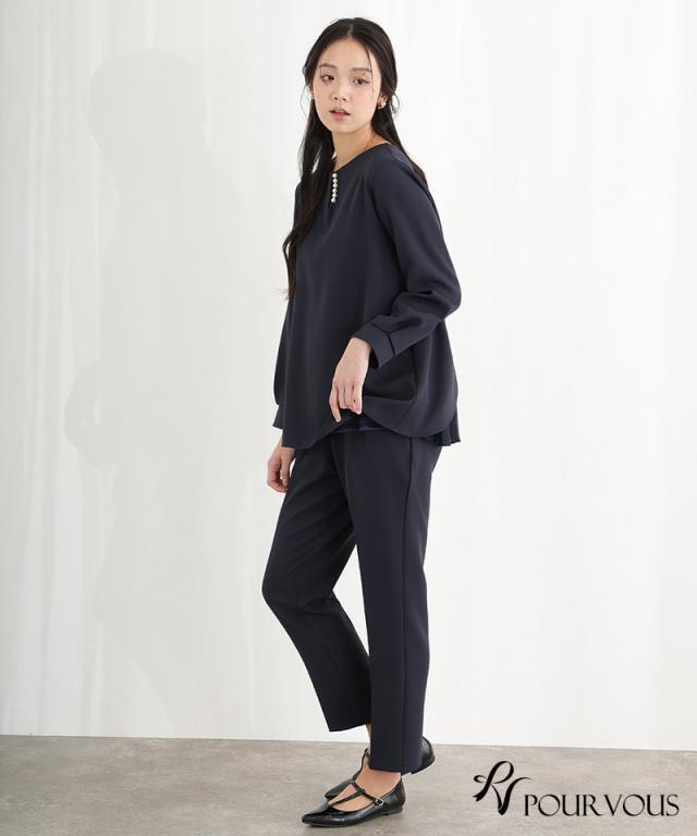 パール付きブラウス2点セットパンツスーツ【191242267】20代・30代・40代・50代・長袖・膝丈・セットアップ・スカート・パンツ・体型カバー・ジャケット・テーラード・スーツ・大きいサイズなど・即日発送・送料無料結婚式・婚活・披露宴・顔合わせ・二次会・同窓会・お呼ばれ・食事会・謝恩会・親族・七五三・お宮参り・冠婚葬祭・弔事・女子会・デート・入学式・卒業式・入園式・卒園式・ママ・マタニティー・セレモニー・セレブ・パーティー