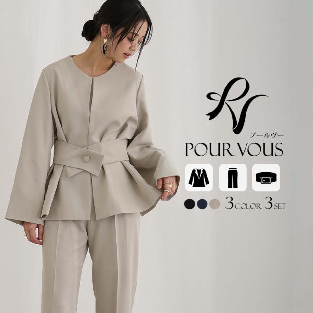 ベルト付き3点セットパンツスーツ【218242217】20代・30代・40代・50代・長袖・膝丈・セットアップ・スカート・パンツ・体型カバー・ジャケット・テーラード・スーツ・大きいサイズなど・即日発送・送料無料結婚式・婚活・披露宴・顔合わせ・二次会・同窓会・お呼ばれ・食事会・謝恩会・親族・七五三・お宮参り・冠婚葬祭・弔事・女子会・デート・入学式・卒業式・入園式・卒園式・ママ・マタニティー・セレモニー・セレブ・パーティー
