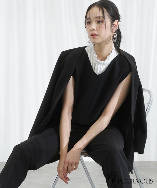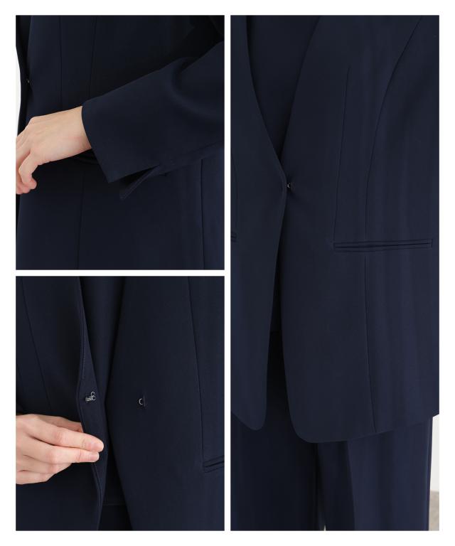 ジャケット、ブラウス2枚、パンツの4点セットで多彩なコーデを楽しめます