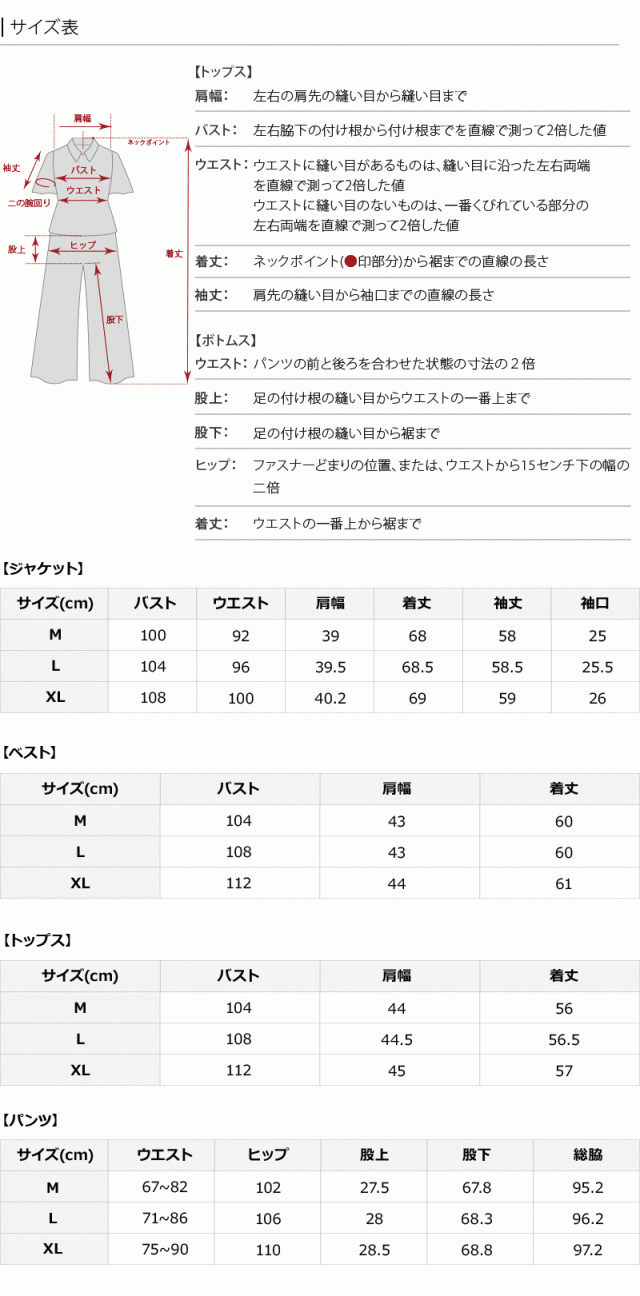 ■伸縮性:トップスややあり、パンツややあり、ジャケットややあり