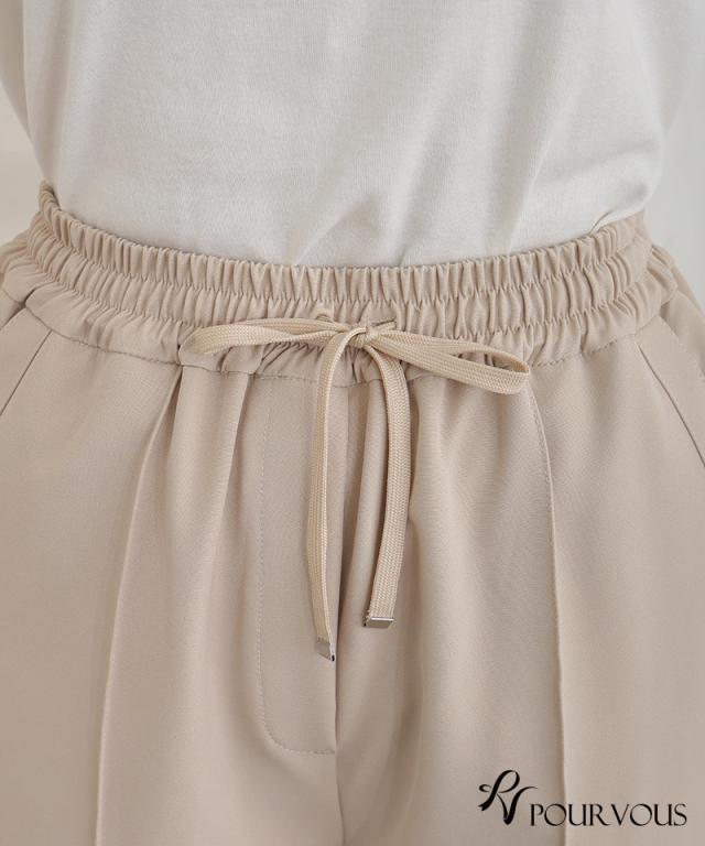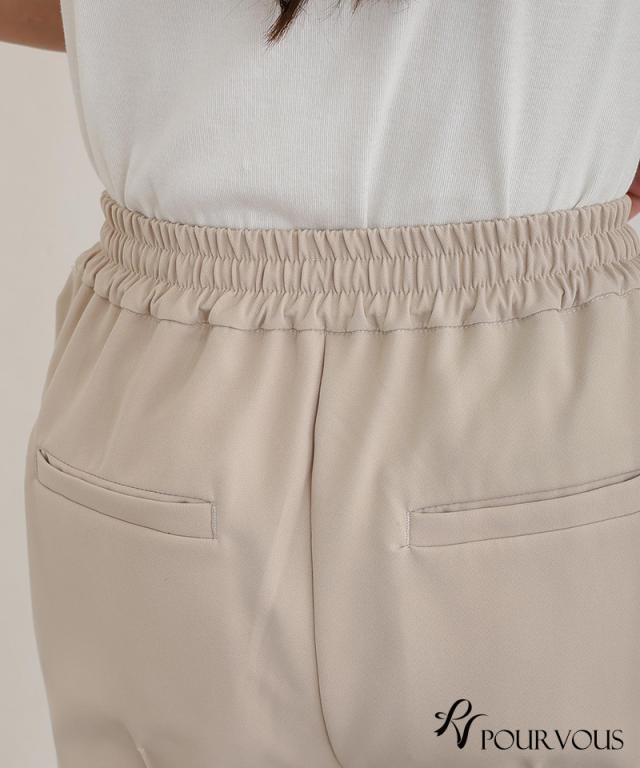 ウエスト総ゴム&ポケット付きでラクな着心地。