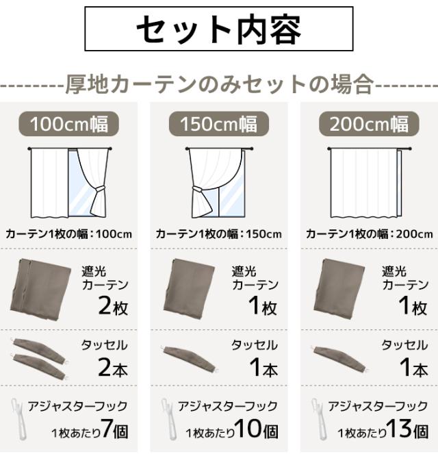 | 遮光カーテン お得なセット(Y) 選べる9サイズ・8カラー 幅100cm×135cm/178cm/200cm 遮光2枚組 幅150cm×丈135cm/178cm/200cm 遮光1枚 幅200cm×丈135cm/178cm/200cm 遮光1枚 |
