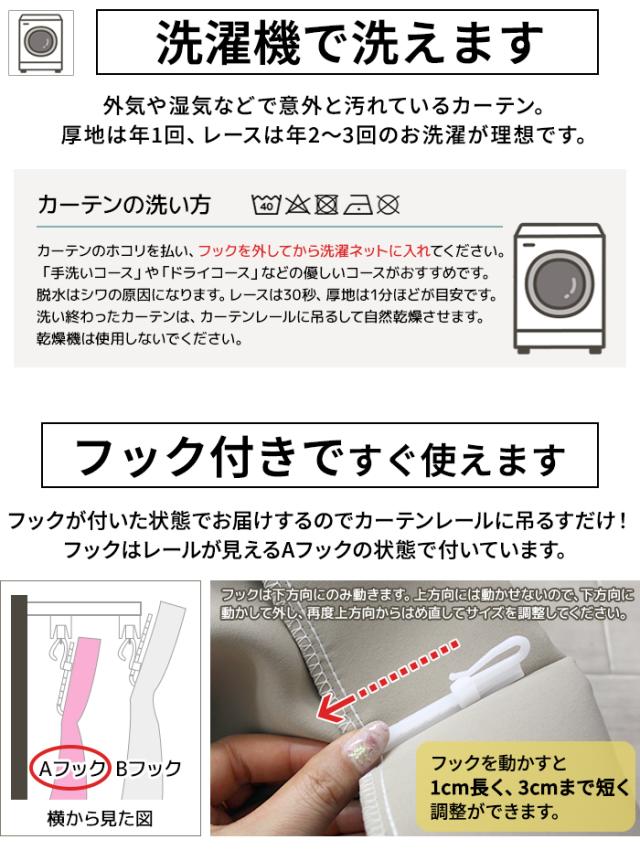| アジャスターフック(Aフック) | カーテン1枚につき7個 | カーテン1枚につき10個 | カーテン1枚につき13個 |