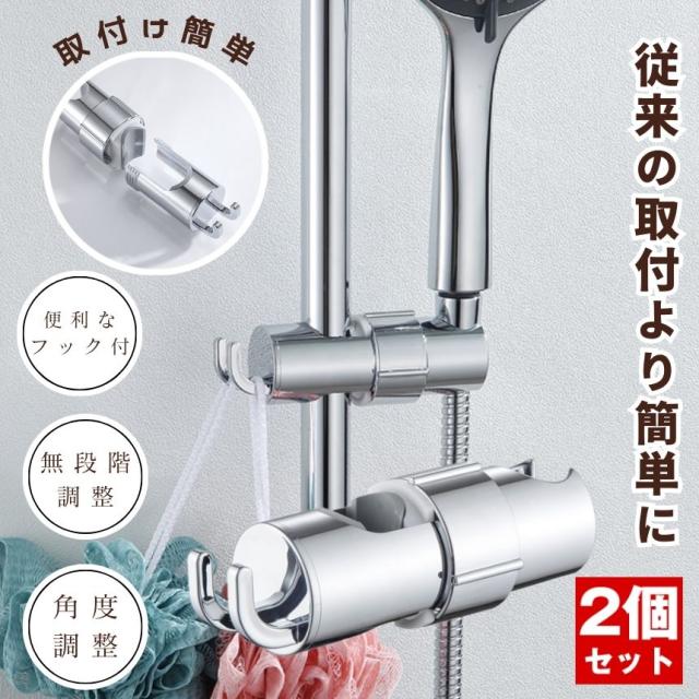2個セット シャワーフック シャワーヘッドホルダー シャワーホルダー スライド シャワー フック スライドバー ラック シャワーヘッド ホルダー 交換用 穴あけ不要 取り付け 交換 風呂 シャワールーム おしゃれ 壁 バス ウォール 浴室 浴槽 キッチン トイレ お風呂 洗面所