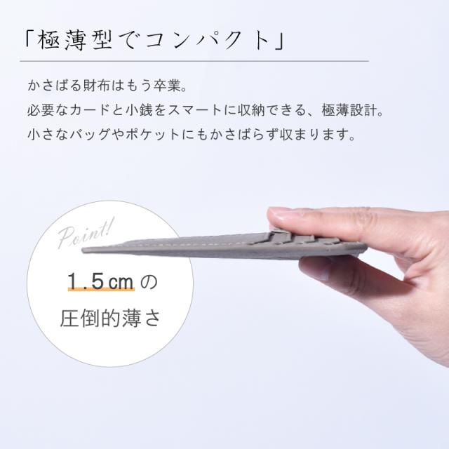 | 特徴 | スマホショルダーやミニバッグと相性◎『万能』フラグメントケース! ・極薄型でコンパクト ・広いマチ ・キーチャーム付 ・上質な牛本革 こんな方におすすめ! ・荷物を少なく済ませたいミニマリストさん ・最小限の機能でコンパクトな財布がいい ・シンプルで高見えする財布がいい ・小さいバッグやポケットに入れたい 「極薄型でコンパクト」 かさばる財布はもう卒業。 必要なカードと小銭をスマートに収納できる、約1.5cmの極薄設計。 小さなバッグやポケットにもかさばらず収まります。 「マチ付ファスナー収納」 ファスナー付きが安心なポケットは小銭や紙幣の収納にぴったりです。 取り外し可能なキーチャームがついているので鍵もまとめて管理できます。 「こだわりの牛本革」 使うほどに手に馴染み、自分だけの経年変化を楽しめます。 柔らかな牛革で使い心地抜群。 「豊富なカラーバリエーション」 自分だけのカラーを選んで、毎日を彩り豊かに。 男女問わずお使いいただけるのでペア財布や、大切な方へのプレゼントにも最適です。 ※“革の表情”について、ご購入前にご確認ください 天然のキズやシワなどが入っている場合があり、これらは本革ならではの個体差によるものと、二つとない表情を魅せる革の個性であるため、風合いをお楽しみ頂けると幸いでございます。 ひどく目立つものを除いて、ある程度は革の個性としてそのまま出荷・発送を致します。 上記のような革の個性による返品・交換は原則お受け致しかねますので、予めご了承下さいませ。 |