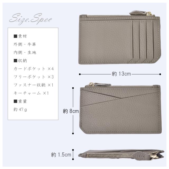 | スペック | カードポケット×4 フリーポケット×3 ファスナー収納×1 キーチャーム×1 |