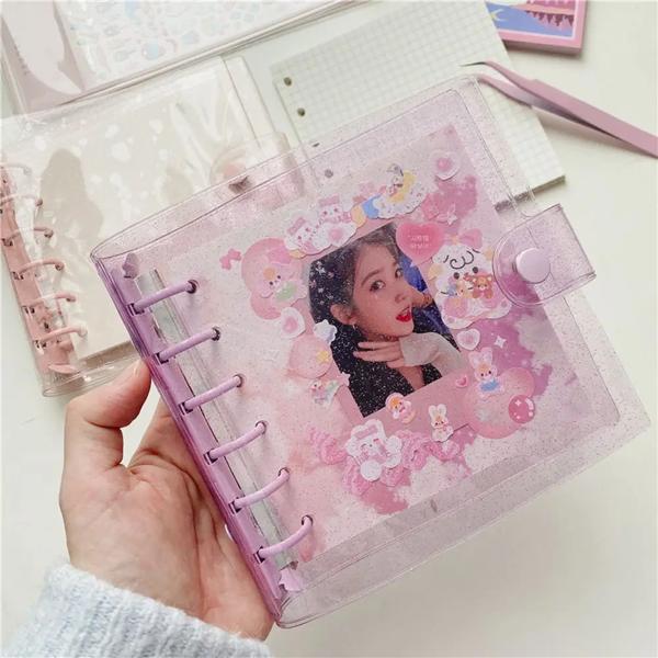 PVCノートブックバインダーステーショナリー、ルーズリーフ、グリッターナルス、アジェンダ写真収集ブック、a7ノートブック、カード