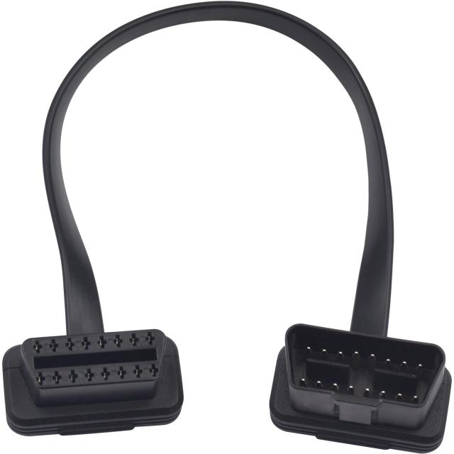 OBD2延長ケーブルは、OBDII 16ピンメスヘッドからオスヘッドのコネクタの拡張器で、フラットな帯状のケーブルで、長さは30cmです。