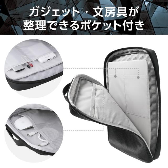 低反発ウェーブカットウレタンフォームがしっかりと衝撃を吸収!大切なノートパソコンを衝撃から守る”ZEROSHOCK”縦型インナーバッグです。周辺機器もまとめて収納可能な、整理タイプです。![]() ■大切なノートパソコンを衝撃から守る”ZEROSHOCK”インナーバッグです。 ■本体内装パソコン収納部には、軽量化と衝撃吸収を両立する低反発ウェーブカットウレタンフォームを内蔵しています。 ■表面生地は、マットな質感で落ち着いた風合いの樹脂コーティング素材です。 ■本体内装には、マウスやケーブルなどの周辺機器を整理して収納できるストレッチメッシュ素材のオープンポケットを2つ備えています。 ■本体内装には、メモ帳や名刺入れなどを整理して収納できるオープンポケットを2つ備えています。 ■本体背面に、厚みがない書類などの収納に便利なオープンポケットを備えています。 ■バックパックへの収納にも便利な、持ち運びやすい縦型タイプです。 ■バックパックなど縦型のバッグから取り出す際や、持ち運びの際に便利なハンドルが付いています。 ■気室が大きく開閉して収納物の出し入れがしやすい、ダブルファスナー仕様のL字開閉設計です。 ■スムーズな開閉と、つまみやすさを両立したオリジナル樹脂引手を採用しています。 ■13.3インチまでのノートパソコンを収納可能です。 ■自社環境認定基準を1つ以上満たし、『THINK ECOLOGY』マークを表示した製品です。 ■環境保全に取り組み、製品の包装容器が紙・ダンボール・ポリ袋のみで構成されている製品です。 ![]() ■外形寸法:W約240mm×D約50mm×H約328mm ※ハンドル含まず ■内寸:W約220mm×D約18mm×H約308mm ※13.3インチノートパソコンの参考収納寸法 ■対応モデル:13.3インチまでのノートパソコン ■パソコン収納部内寸備考:※W約220mm×D約18mm×H約308mmが対応端末サイズとして最大です。これより小さい寸法の端末の収納に対応します。一部の端末は対応しない場合があり、保証の限りではありません。 ■ポケット(気室内):オープンポケット(ストレッチメッシュ)×2、オープンポケット×2 ■ポケット(背面):オープンポケット×1 ■カラー:ブラック ■材質:ポリエステル、ポリウレタン ■重量:約400g |