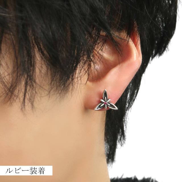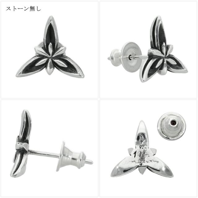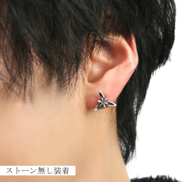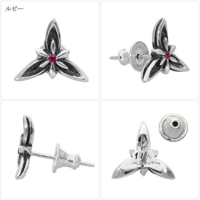 選べる17種 フラワー ストーン ピアス 1P 片耳用 シルバー 925 誕生石 天然石 ジルコニア 花 3枚花 植物 きれいめ ゴシック ハード シルバーピアス