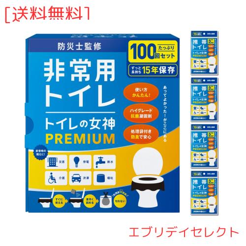 どこでも簡単トイレ トイレの女神PREMIUM 簡易トイレ 【2人〜4人世帯向けに防災士が監修】 100回分 15年保存&日本製 携帯トイレ 防災トイ