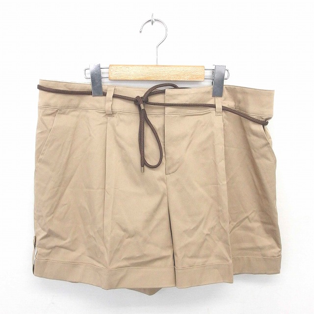 【中古】未使用品 アンタイトル UNTITLED タグ付き ショート パンツ ロールアップ ウエスト紐 46 薄茶 ベージュ