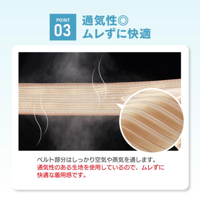ベルト部分は通気性に優れた生地を使用しているので、ムレずに快適な着用感。