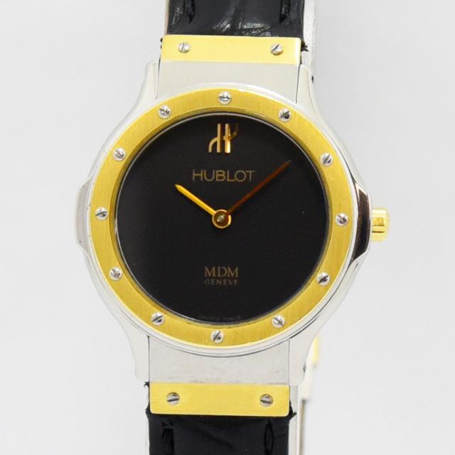 ウブロ 中古 レディース HUBLOT MDM クラシック 1280.100.2 クォーツ SS ステンレス YG ゴールド ブラック 軽仕上げ