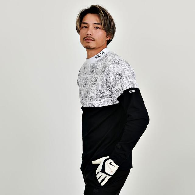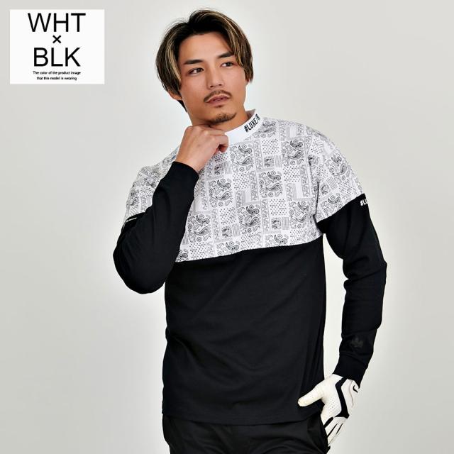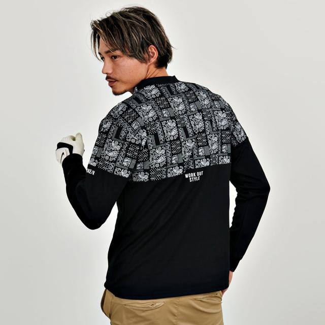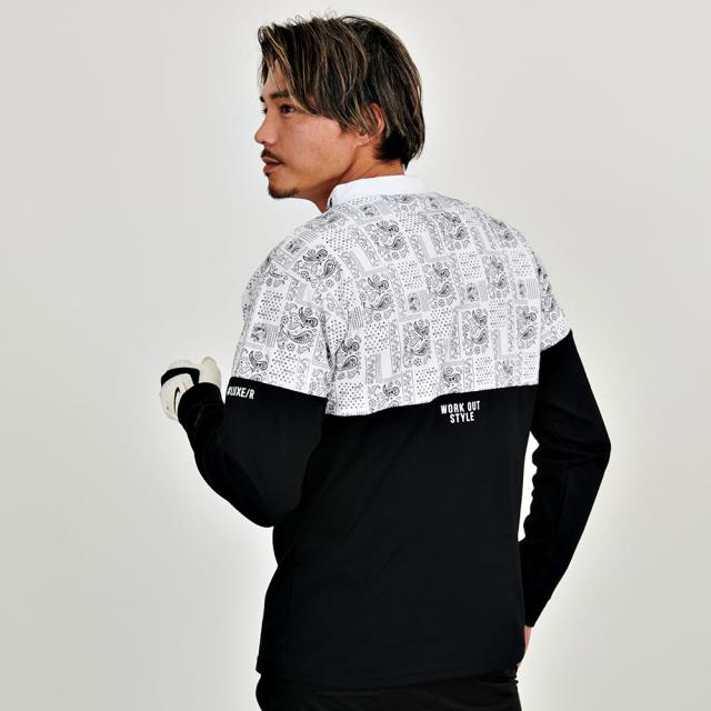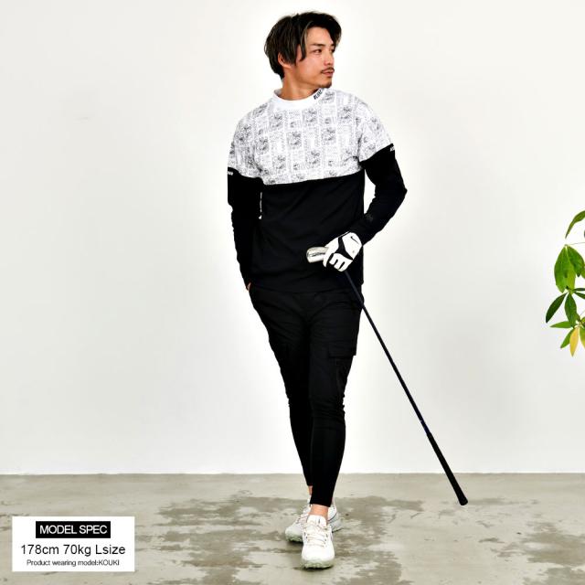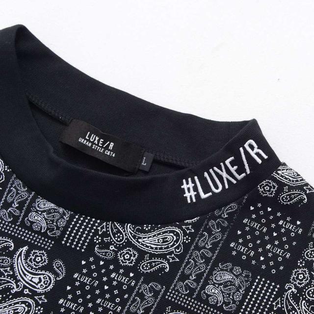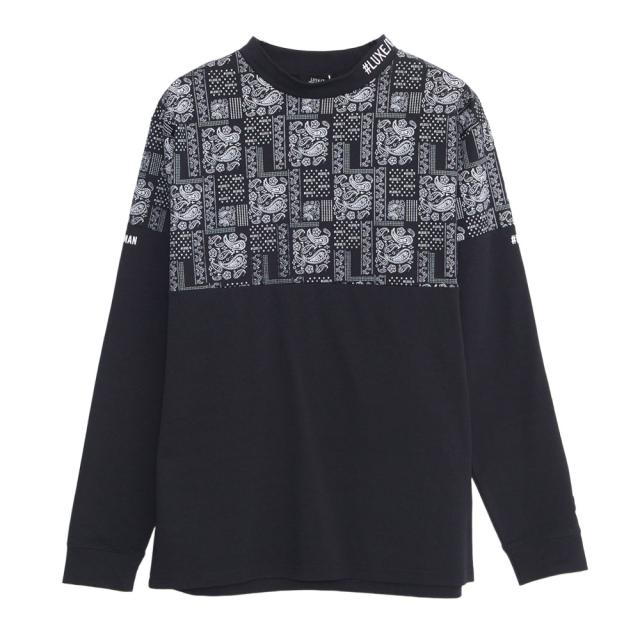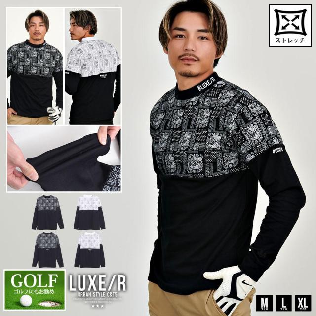 カットソー メンズ モックネック 長袖Tシャツ ロンT 長袖 Tシャツ ブランド ゴルフウェア おしゃれ ペイズリー ロゴ トップス 白T 白Tシャツ ストレッチ ホワイト ブラック 黒 M L XL スポーツ ユニセックス LUXE R ラグジュ 20代 30代 40代 服 春 ファッション [45938]