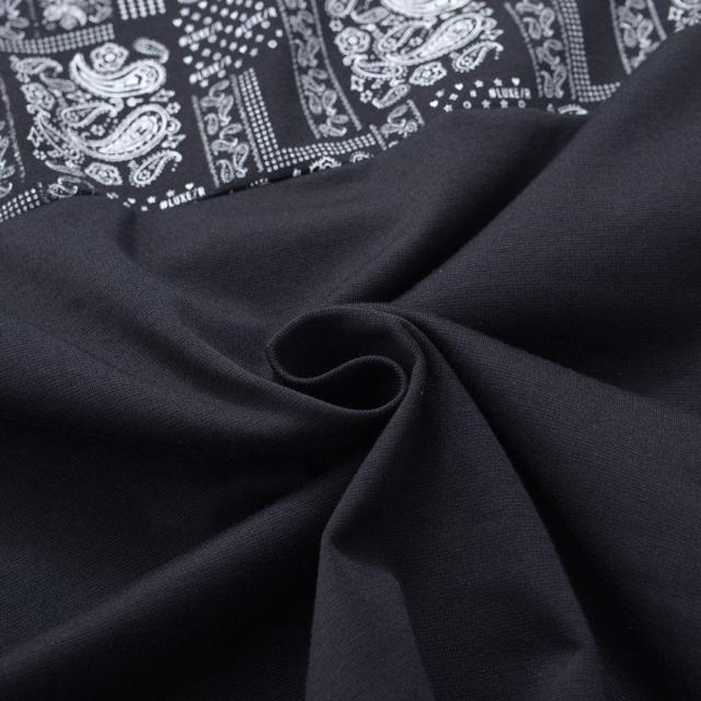 ブランドオリジナルのペイズリー柄を使用し、ボディの上下を切り替えたバイカラーデザインが目を惹くモックネックカットソー。