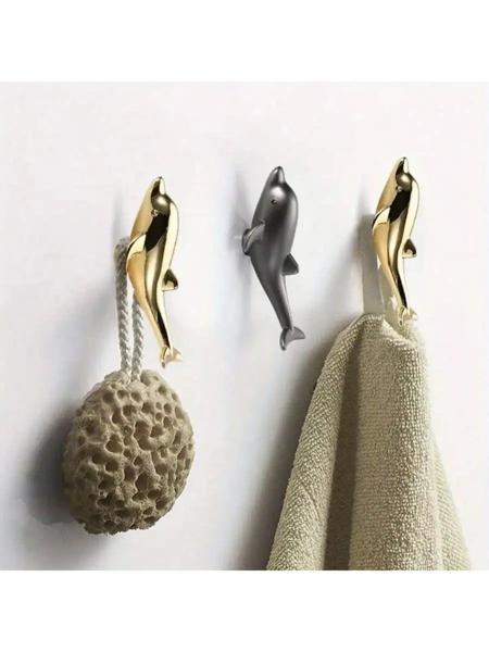 イルカ型金属製フック、多機能壁フック、ドアキャビネット、帽子、コート、バスタオル用のクリエイティブなハンガー、ネジ付き、1個