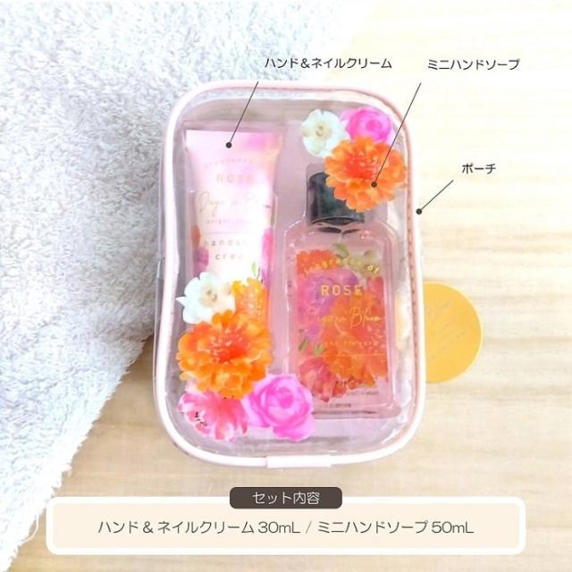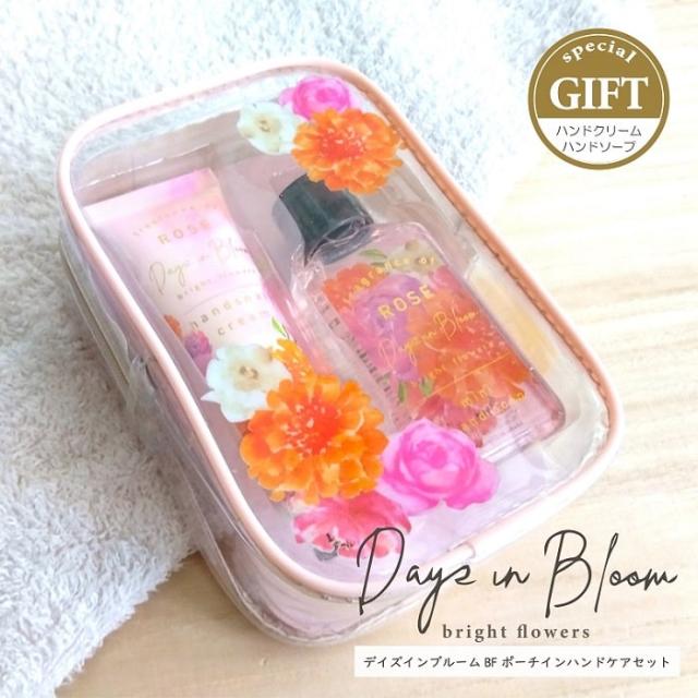 ハンドケア デイズインブルーム BFポーチインハンドケアセット ハンドクリーム&ミニハンドソープ ポーチ付き 保湿成分配合 ローズの香り 携帯 ギフト 贈り物