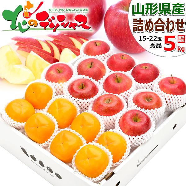 【出荷中】 冬の果実 2色詰め合わせ 5kg Bセット (サンふじ&庄内柿/秀品/16玉〜22玉入り) 旬 秋の味覚 りんご リンゴ 柿 冬ギフト お歳暮 ギフト 贈り物 贈答 お祝い お礼 お返し 内祝い プレゼント 自宅用 家庭用 おうち用 果物 フルーツ 山形 産地直送 お取り寄せ