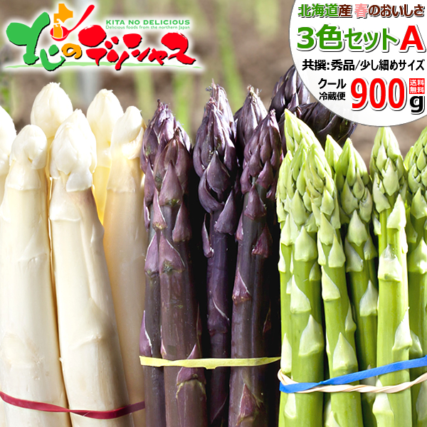 【予約】 北海道産 アスパラ 3色セットA 900g (共撰/S-2Lサイズ/冷蔵) 春の味覚 北海道アスパラ あすぱら アスパラガス グリーンアスパラ ホワイトアスパラ パープルアスパラ ギフト 贈り物 プレゼント 自宅用 家庭用 おうち用 野菜 北海道 グルメ お取り寄せ