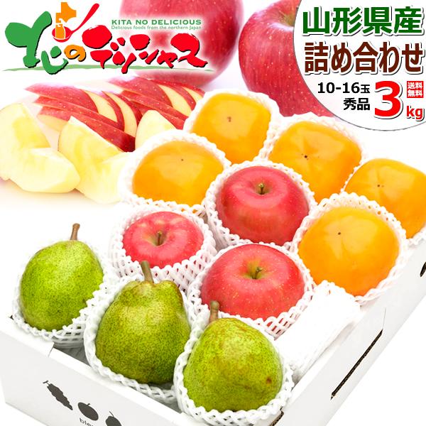 【出荷中】 冬の果実 3色詰め合わせ 3kg Dセット (サンふじ&ラ・フランス&庄内柿/秀品/10玉〜16玉入り) 旬 秋の味覚 りんご リンゴ 西洋梨 柿 冬ギフト お歳暮 ギフト 贈り物 贈答 お祝い お礼 内祝い 自宅用 家庭用 おうち用 果物 フルーツ 山形 産地直送 お取り寄せ