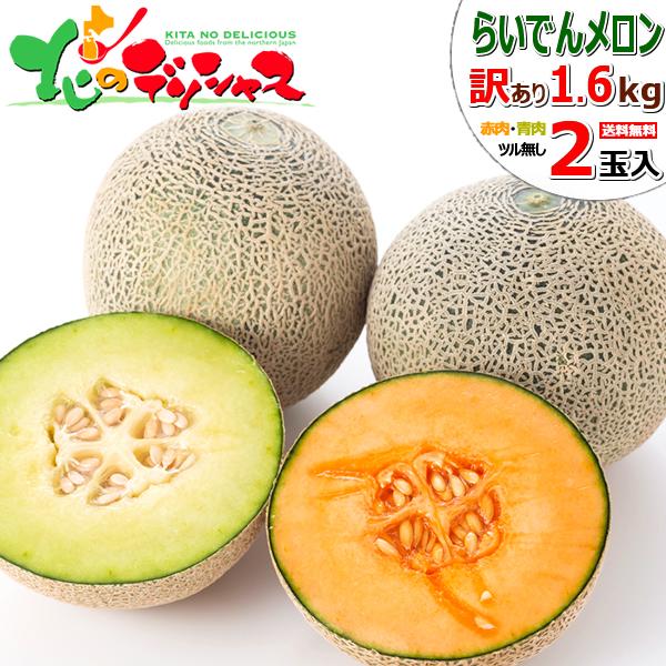 【予約】 北海道産 ご家庭用 らいでんメロン 2玉 (赤肉&青肉/ツル無し/1玉 1.6kg/常温) 訳あり わけあり フルーツ 2玉 中玉 メロン あおにくめろん 青肉メロン JAきょうわ 3大産地 ご自宅用 おうち用 お得 お買い得 食べ放題 果物 北海道 共和町 お取り寄せ