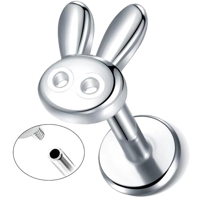 兔(ウサギ)のモチーフを逆ネジタイプの16ゲージのシャフトにセットしたステンレス製のラブレット型ボディピアス。兎年の彼氏や卯年の年末年始のイベント、バニーガールやラビットカフェのスタッフにも!男性からも女性からも支持される動物アニマルのオシャレなボディーピアスです。