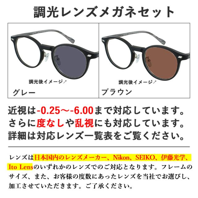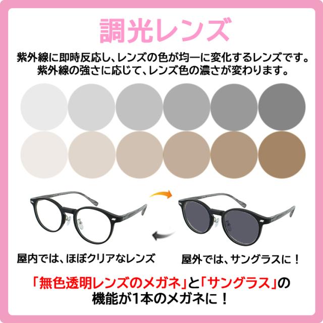 度付き 度なし 調光メガネ ボストンタイプ jjk1002 非球面レンズ